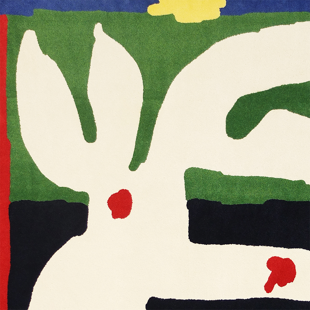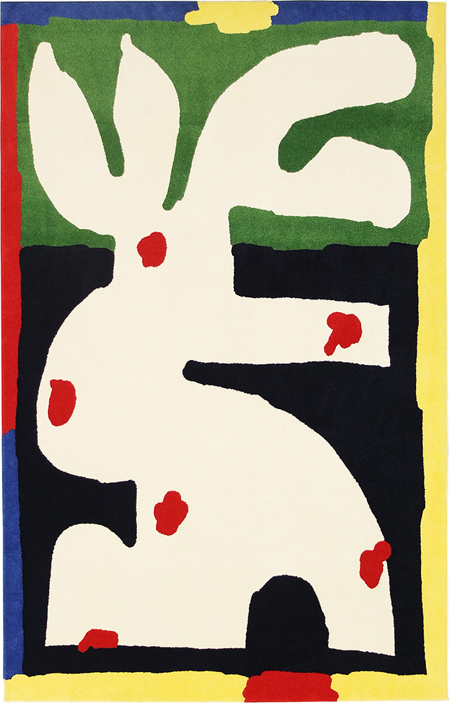 Handmade inlaid rug from WET! the solo exhibition at Moiety, New York (Nov 8 — Dec 9).